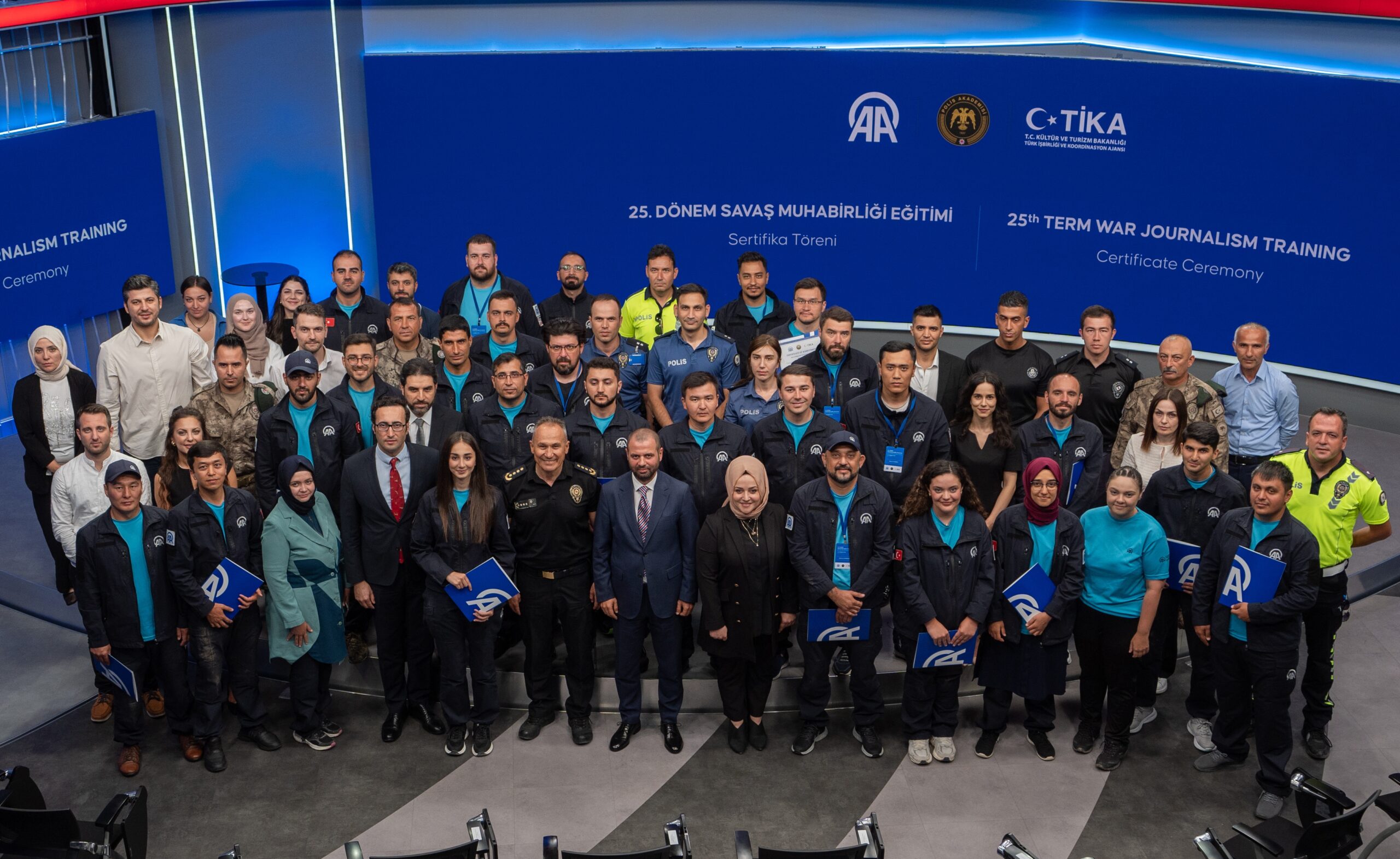 Anadolu Ajansı (AA), Polis Akademisi ve Türk İşbirliği ve Koordinasyon Ajansı Başkanlığı (TİKA) işbirliğinde düzenlenen “25. Dönem Savaş Muhabirliği Eğitimi”ni tamamlayan 10’u AA personeli, 15’i farklı ülkelerden 25 kursiyer sertifikalarını aldı.
