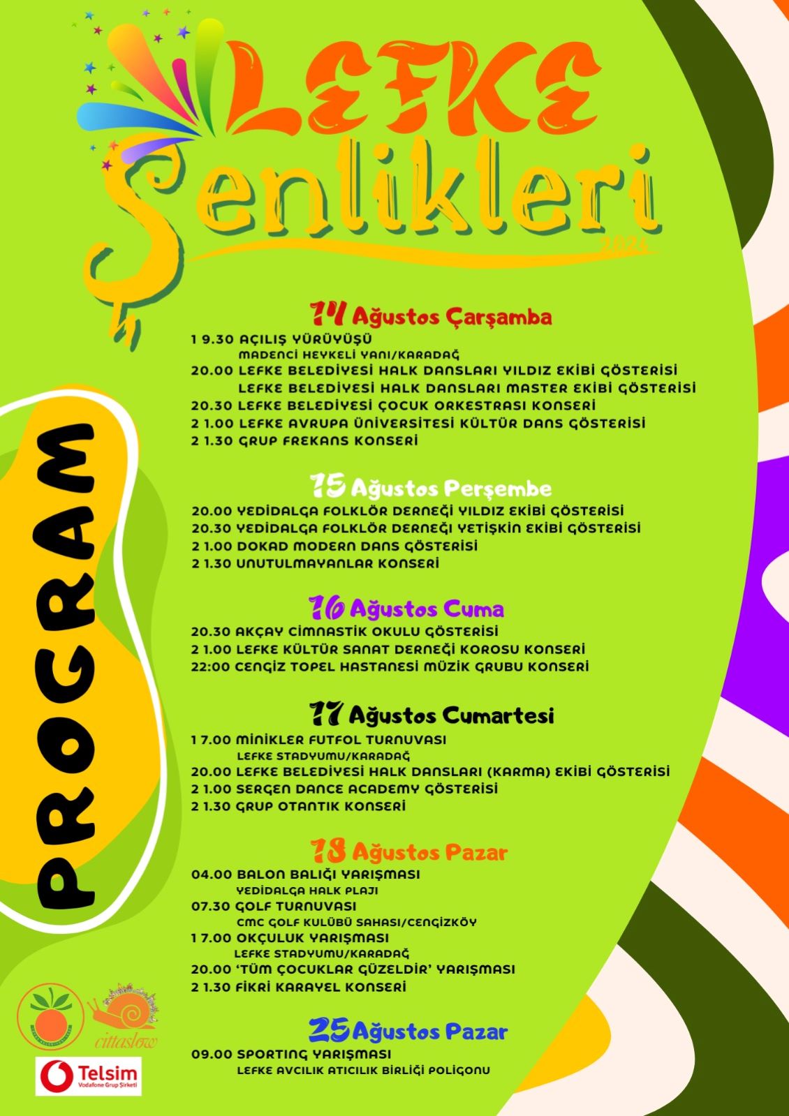 Şenliklerde, Lefke Belediyesi Çocuk Orkestrası, Lefke Kültür Sanat Derneği Korosu, Grup Frekans, Grup Otantik, ve Fikri Karayel konser verecek.