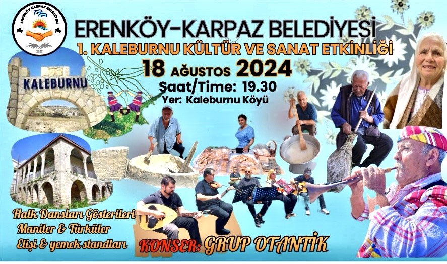 Erenköy-Karpaz Belediyesi’nin organize ettiği 1.Kaleburnu Kültür ve Sanat etkinliğinde Grup Otantik konseri de yer alacak. Gecede, Kıbrıs’a özgü elişi ve yemek stantları da kurulacak.