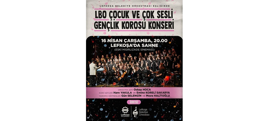 Lefkoşa Belediye Orkestrası (LBO) Çocuk ve Çok Sesli Gençlik Korosu, 16 Nisan Çarşamba akşamı Lefkoşa’da Sahne’de (eski Mısırlızade Sineması) müzikseverlerle buluşacak.