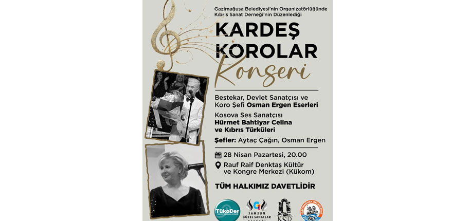 Kıbrıs Sanat Derneği, Gazimağusa Belediyesi’nin organizatörlüğünde, Kardeş Korolar konsepti çerçevesinde, Samsun Güzel Sanatlar Derneği ile Sinop Tüketiciler Derneği koroları olarak 28 Nisan Pazartesi saat 20.00’de Rauf Raif Denktaş kültür ve Kongre Merkezi’nde hayatta olan bestekarlardan, Devlet Sanatçısı, koro şefi ve bestekar Osman Ergen’in besteleri ile Kıbrıs Türkülerinden oluşan bir konser verecek.