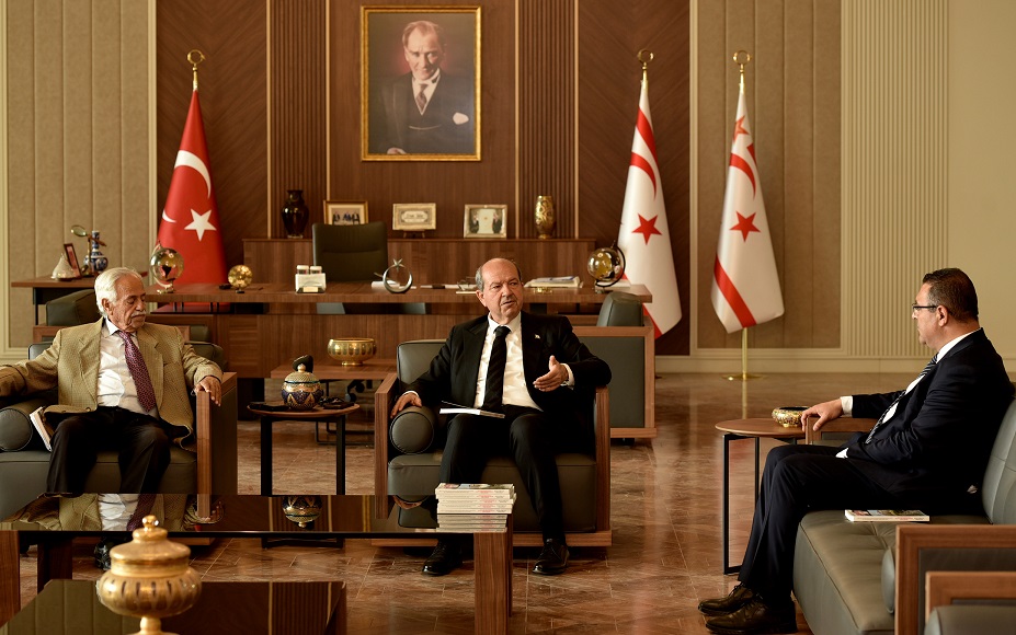 Cumhurbaşkanlığı yeni yerleşkesinde Cumhurbaşkanı Ersin Tatar’ın makam odasında gerçekleştirilen kitap tanıtımında, Mustafa Haşim Altan ve Gökhan Güler de hazır bulundu.