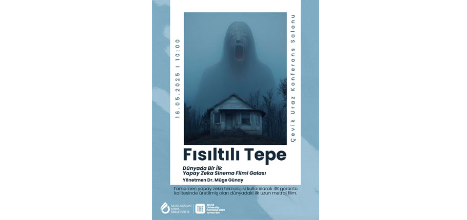 Yönetmenliğini Dr. Müge Günay’ın üstlendiği ve tamamen yapay zekâ teknolojisiyle üretilen Fısıltılı Tepe adlı korku filminin galası, vizyondan önce ilk kez Uluslararası Kıbrıs Üniversitesi (UKÜ) İletişim Fakültesi ev sahipliğinde düzenleniyor.