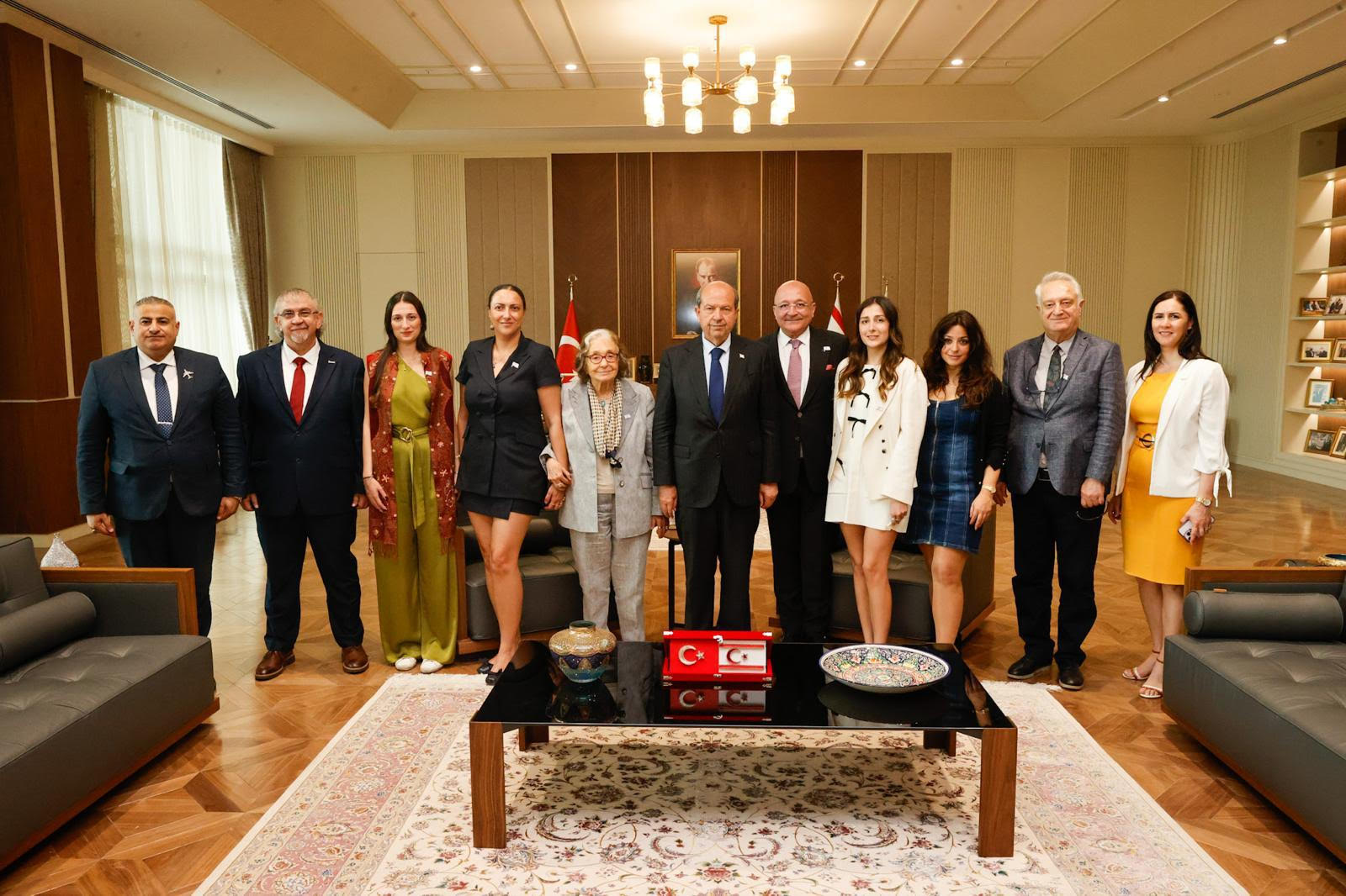 Cumhurbaşkanı Ersin Tatar, Çocuk ve Gençlik Edebiyatı Araştırmacısı ve Yazar Gülten Dayıoğlu ve beraberindeki heyeti kabul etti