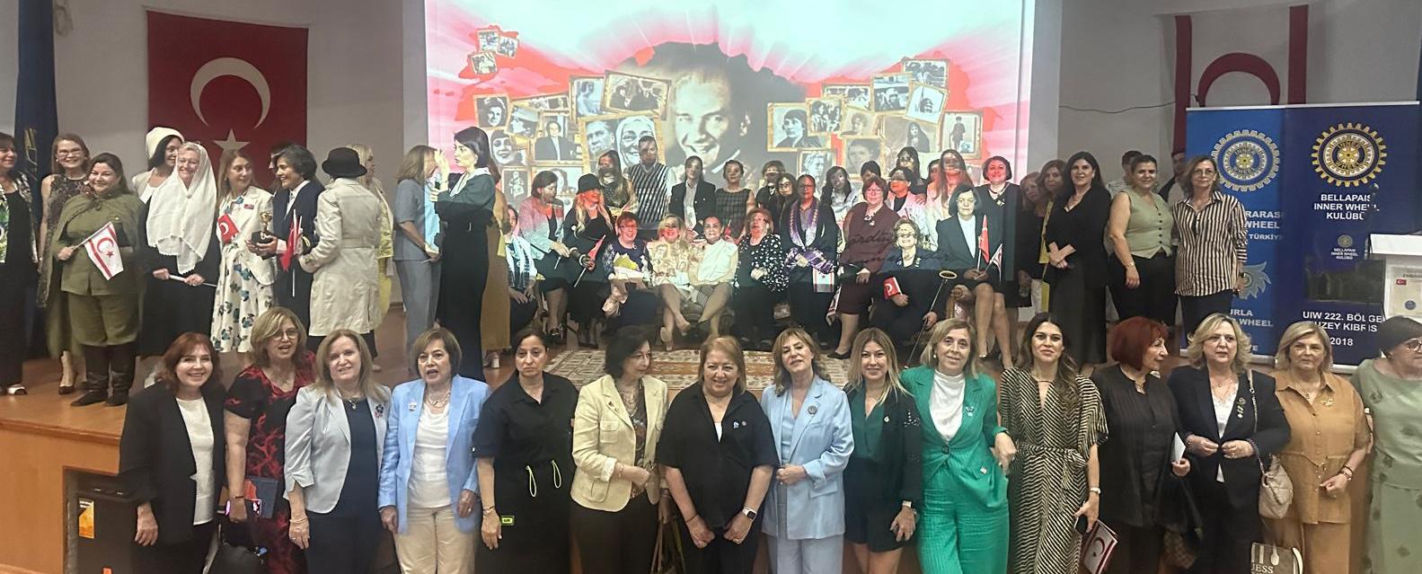 Cumhurbaşkanı Eşi Sibel Tatar, Kuzey Kıbrıs ve Türkiye’deki Inner Wheel (IW) kulüplerinin ortak çalışmasıyla hayata geçirilen “Düşten Düşünceye Zamansız Kadınlar: Kıbrıs-Türkiye” etkinliğine katılarak, konuşma gerçekleştirdi.