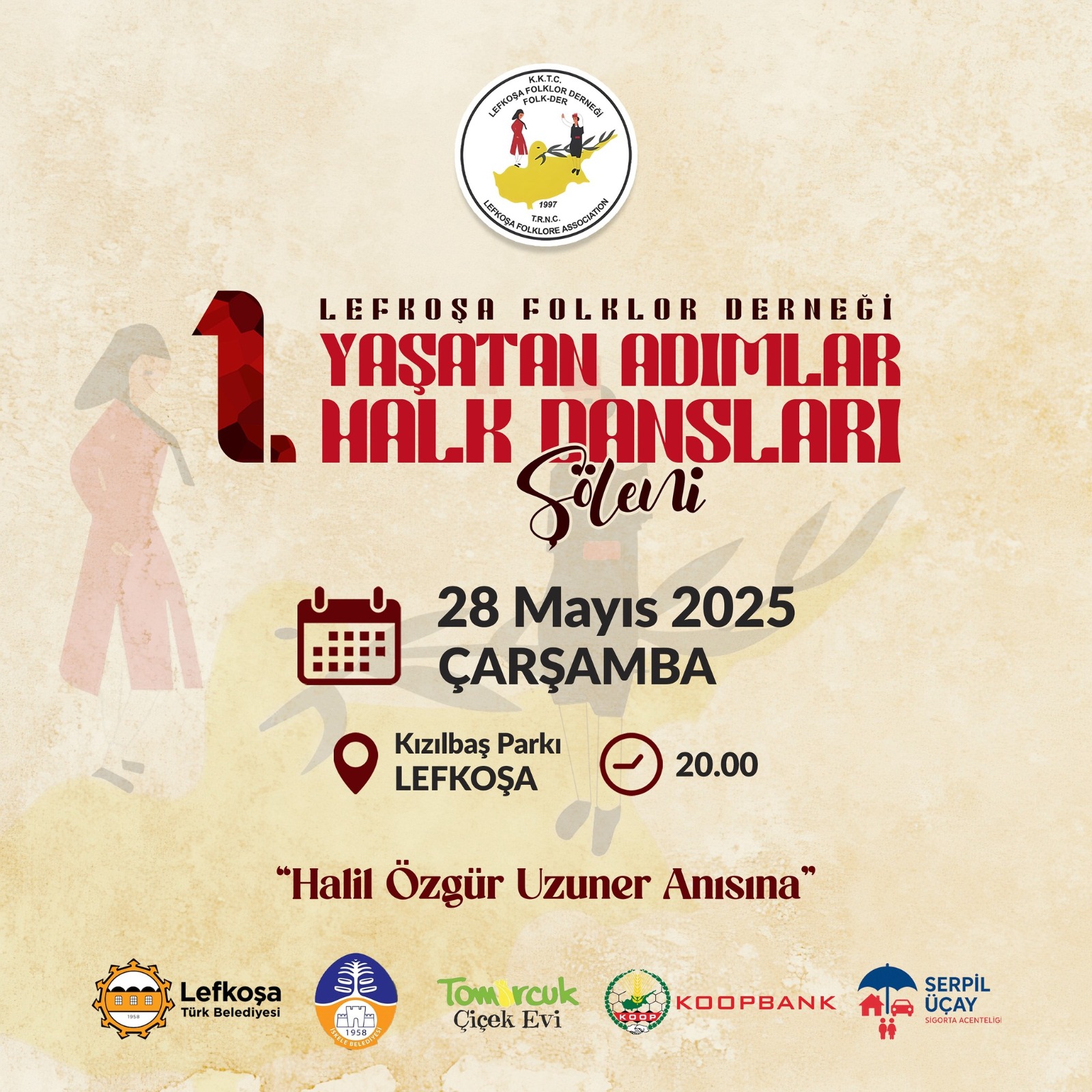 Lefkoşa Folklor Derneği (Folk-Der), merhum Halil Özgür Uzuner anısına “Folk-Der 1. Yaşatan Adımlar Halk Dansları Şöleni” düzenliyor. Yarın akşam (28 Mayıs 2025) saat 20.00’de Lefkoşa Kızılbaş Parkı’nda gerçekleşecek olan şölende, 9 farklı halk dansları ekibi sahne alacak.