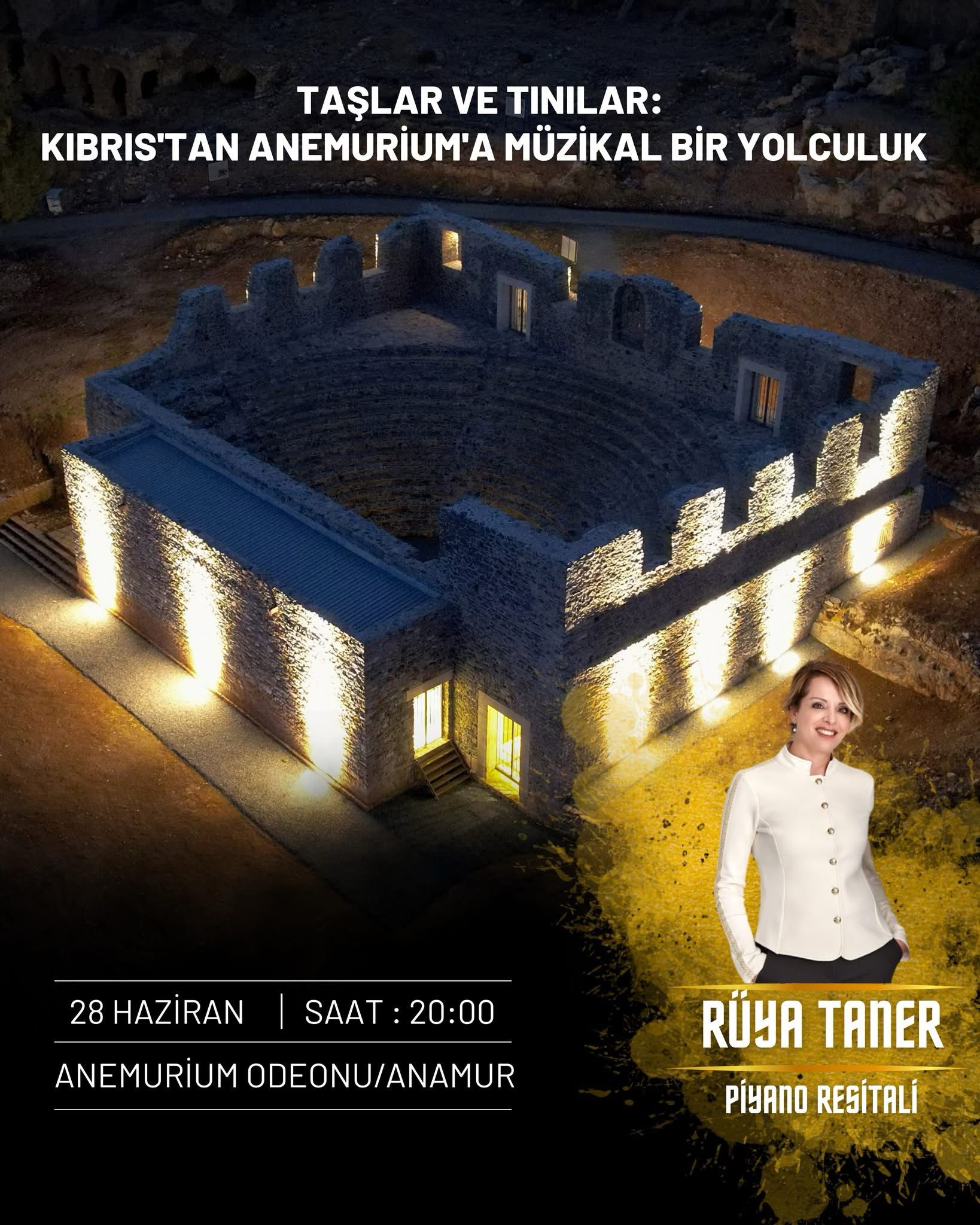 Rüya Taner, 28 Haziran’da ise Anamur’da Yücelen Vakfı’nın desteğiyle düzenlenen “Taşlar ve Tınılar: Kıbrıs’tan Anemurium’a Müzikal Bir Yolculuk” adlı etkinliğe ev sahipliği yapacak Anemurium Antik Kenti’nde piyano resitali verecek.
