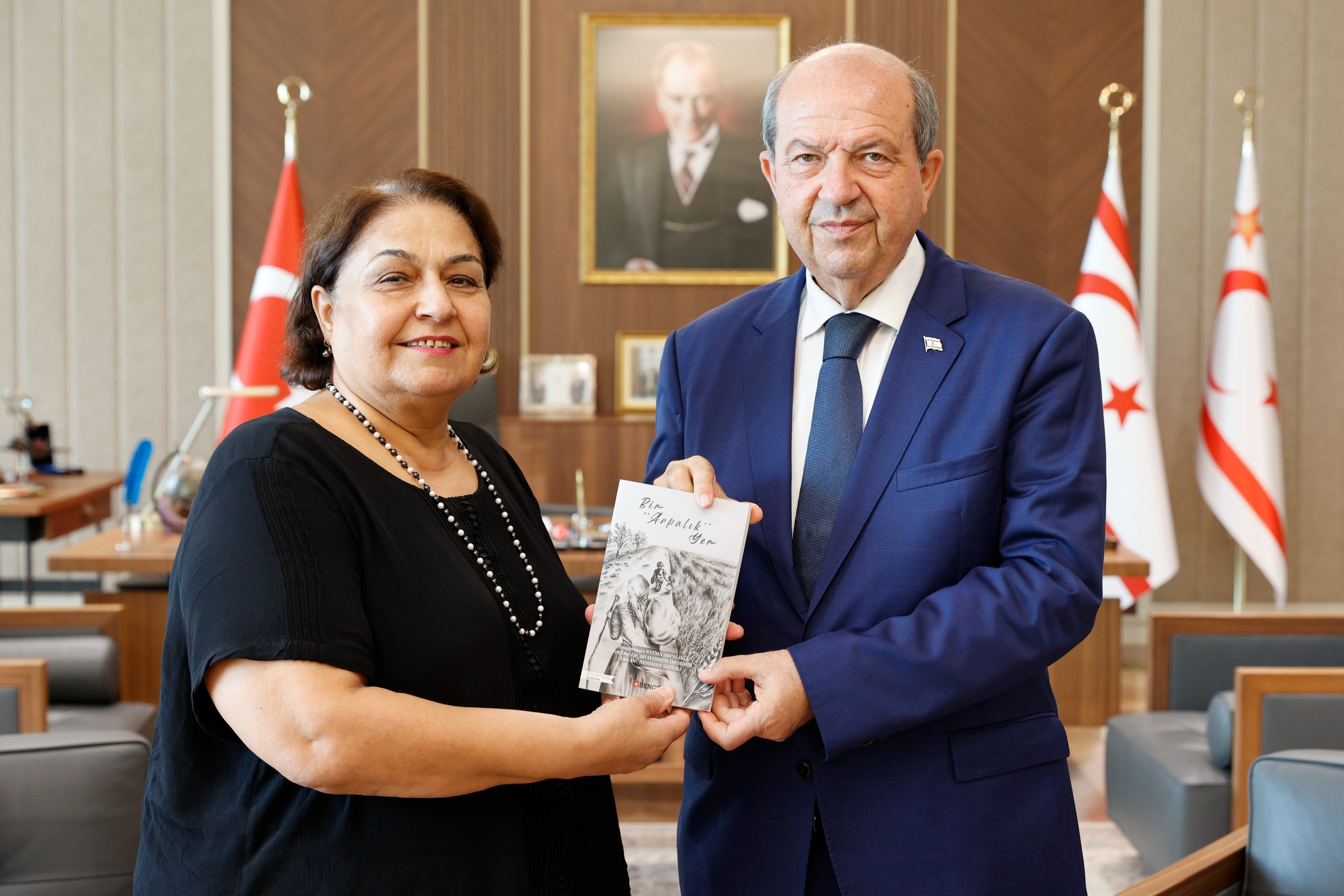 Girne Amerikan Üniversitesi İletişim Fakültesi Dekanı Neriman Saygılı, 1964 yılında Arpalık Köyü’nde yaşananları konu alan “Bir Arpalık Yer” adlı kitabı Cumhurbaşkanı Ersin Tatar’a takdim etti.