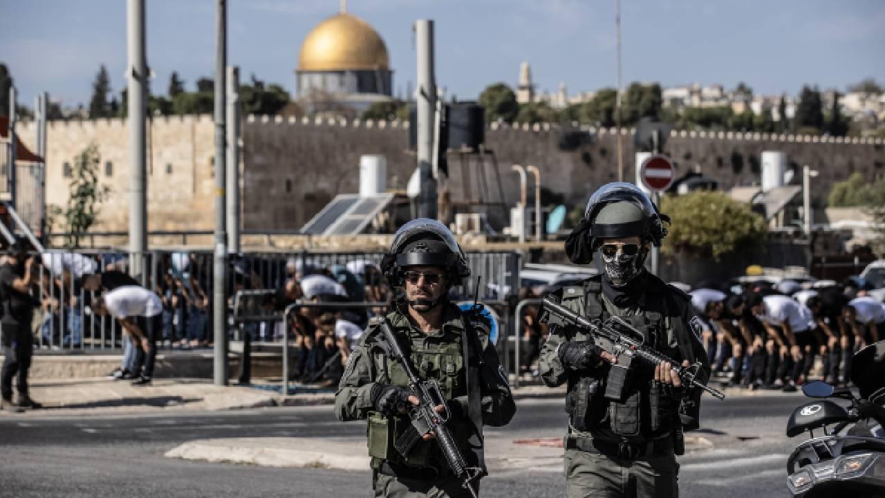 İsrail polisi, Yahudi yerleşimcilerin Mescid-i Aksa’ya baskın gerçekleştirdiği sırada Filistinlilerin ve Müslümanların Aksa’ya girişini engelliyor.