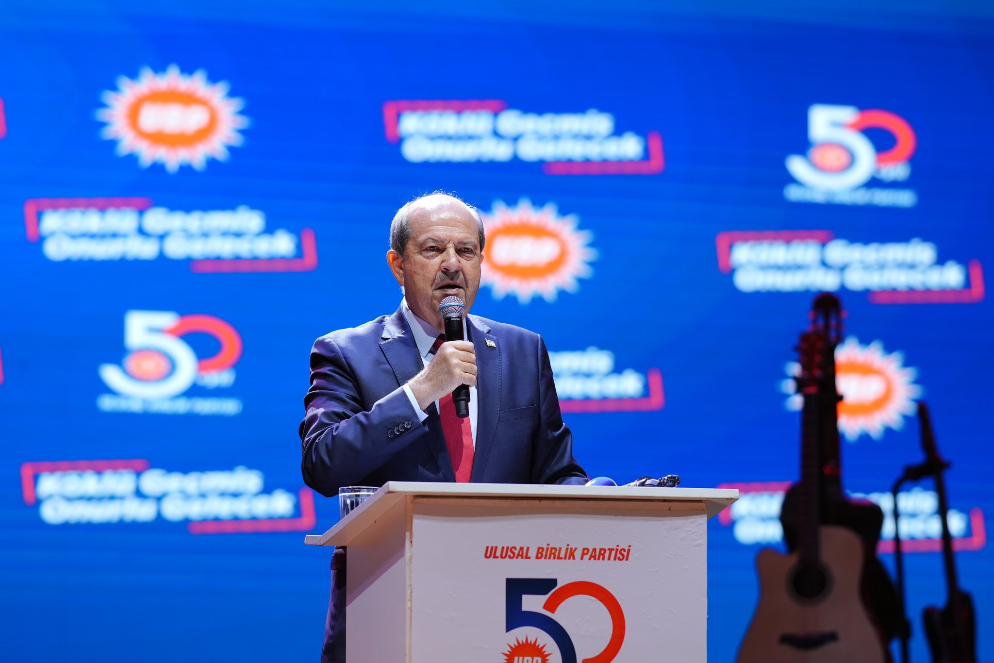 “Egemen eşitlik ve eşit uluslararası statü temelinde iki devletin iş birliğine dayalı bir vizyonla seçime girdim ve halkımızın takdiriyle Cumhurbaşkanı oldum. Bu vizyonu uluslararası alanda resmileştirmek amacıyla temaslara başladım ve 2021’de BM Genel Sekreteri’nin ev sahipliğinde düzenlenen 5+BM gayriresmî zirvesinde bu vizyonu kayda geçirdim. Bu zirve, Kıbrıs müzakere tarihinin dönüm noktasıdır.”