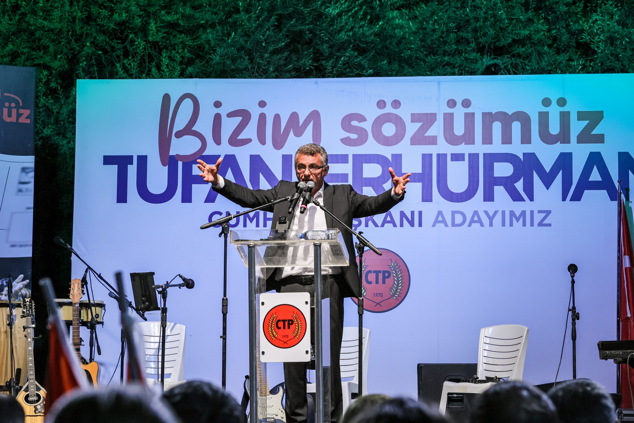 “Memleket bu beş seneyi hiç fark etmedi zannettiler; bu memleketin aklına dair hesapları yanlış. Siz beş senedir, önceki dört cumhurbaşkanımızın aralarındaki görüş ayrılıklarına rağmen hepsinin de yaptığı bir şeyi hiç yapmadınız: Kıbrıs Türk halkının hak ve çıkarlarını uluslararası alanda savunmaya, korumaya ve ileriye taşımaya çalışmak” diye konuşan Erhürman, beş bomboş yılın geride kaldığını vurguladı. Tufan Erhürman, “Ben müzakere masasına oturmam” dediniz. Görüşme masasına da oturmadınız. Bu halk, “bu hal hiç iyi değil” diyor. Umutlu olacağız, mutlu olacağız; bu halleri değiştireceğiz. Bize yakışan bu değildir; halk bunu söylüyor, bunu duysunlar. Beş senedir bu halkı öyle bir duruma soktunuz ki bu halkın sesi duyulmuyor. Bu halkın adı bile bilinmez oldu; bu halkın bu adadaki varlığı unutulur oldu. Hiç kimse “Kıbrıs Türk halkı yokmuş” gibi davranamayacak. Hep vardı ve var olacak; kimsenin bundan şüphesi olmasın” dedi.