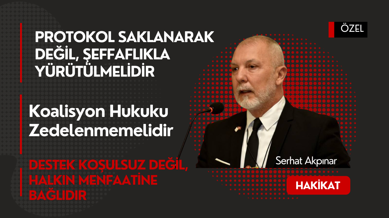 Parti içi iletişim eksikliğine de dikkat çeken Akpınar, bu durumun kabul edilemez olduğunu belirtti. Protokolün onaylandığı gün yaşanan tartışmalar sonrasında, Kıbrıs Türk halkının haklarını güvence altına alacak bir ek protokol hazırlanacağı taahhüdü doğrultusunda destek verdiklerini ifade eden Akpınar, bu desteğin koşulsuz olmadığını söyledi.